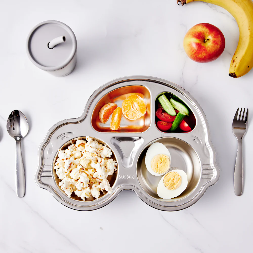 Stainless Steel Divided Car Plate with Suction – Mealtime Made Easy for Kids