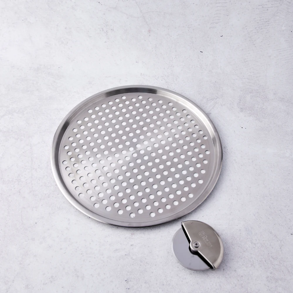 Looking for a metal pizza tray with a little more versatility? You might also love our solid pizza pan – great for deep-dish moments or anything a little more saucy. And don’t forget the stainless steel pizza cutter to complete your set!